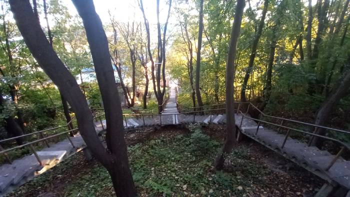 Θα μπορούσε να είναι δημιούργημα του Escher . Η γνωστή εικόνα με τις αμέτρητες σκάλες που οδηγούν εκεί που ξεκίνησαν. Και αυτό σας το λέω, γιατί θύμιζε κάτι από αυτό. Αν και τις κατεβήκαμε δεν μετρήσαμε πόσες ήταν. Το σίγουρο είναι πως το Κάουνας φημίζεται για τις σκάλες που διαθέτει σε πάρκα.